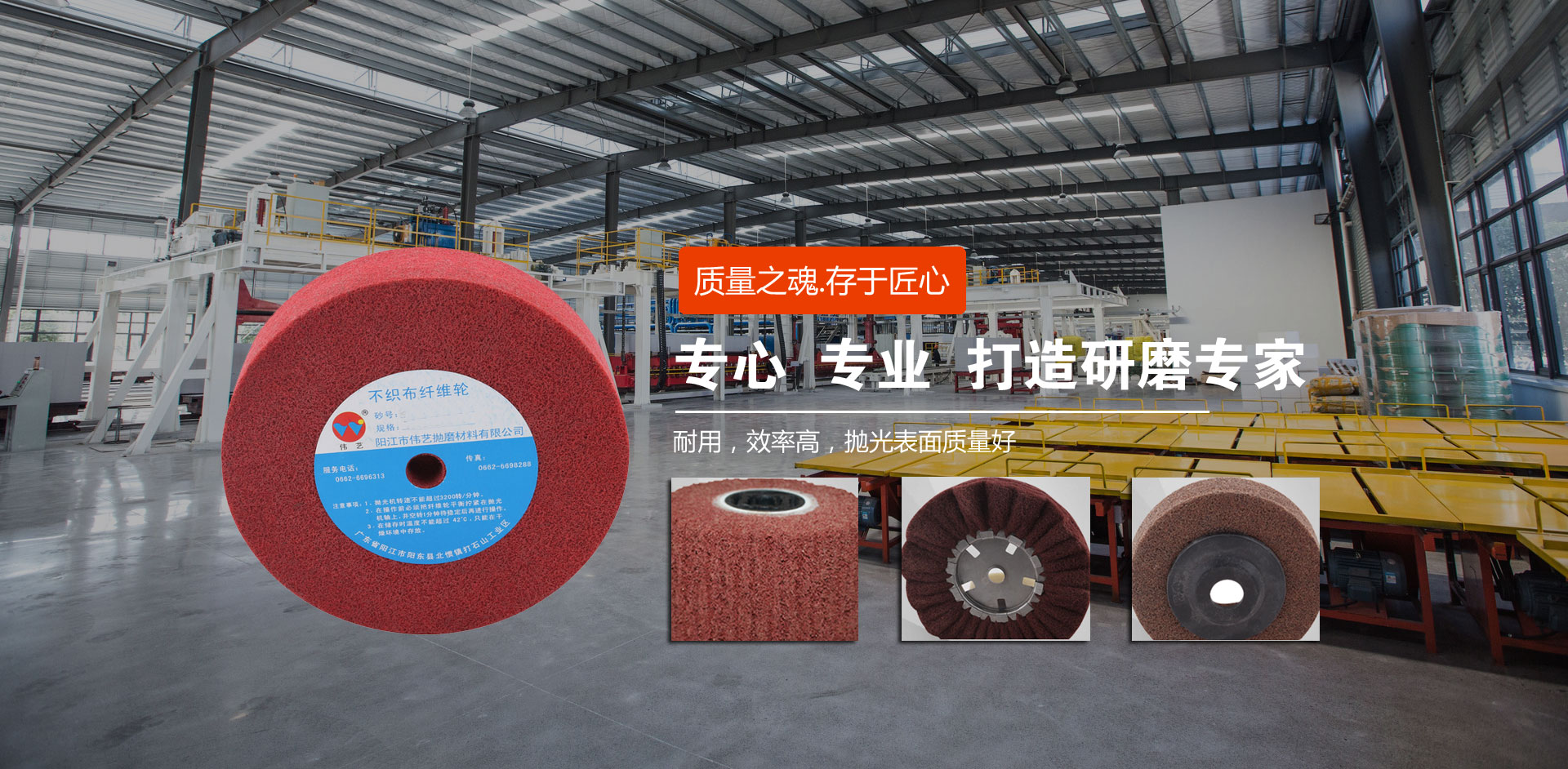 陽江市偉藝拋磨材料有限公司座落于中國刀剪之都——陽江市,具有近二十年尼龍輪生產和銷售經驗,生產基地占地面積4.6萬多平方米。偉藝公司立足自主研發,致力于產業化發展?,F已研發、生產了尼龍輪、擦色輪、飛翼輪、拉絲輪、清潔拋、不織布刷輥、工業擦布、塑膠研磨石、金剛砂、噴膠棉等十多種應用于多種領域的研磨材料,并可以根據客戶的需求提供針對性解決方案和個性化服務。 偉藝公司致...